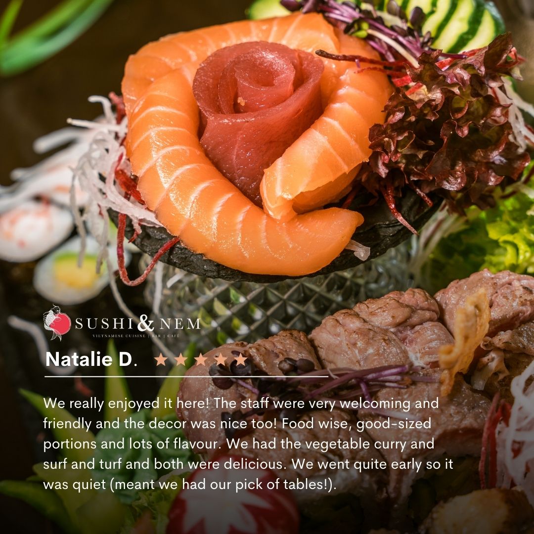 Reviews highlight the friendly service and inviting ambiance, making it an ideal spot for a cozy meal or a vibrant takeout experience. While some dishes, such as the duck with peanuts, may come at a premium compared to local options, diners appreciate the quality that justifies the price. Various patrons have lauded the generous portion sizes and the exceptional fusion cuisine that complements classic sushi offerings. Overall, Sushi & Nem Ravensburg promises a memorable dining experience for sushi enthusiasts and food lovers alike.